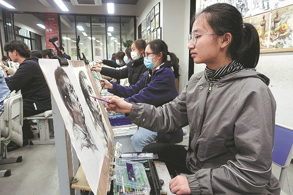 Wang Jiayi, a second-year student at the Central Academy of Fine Arts in Beijing, trained at an art studio in the capital three years ago. She said the studios systematically teach all the key areas required for the exam, and most of the teachers come from well-known academies.