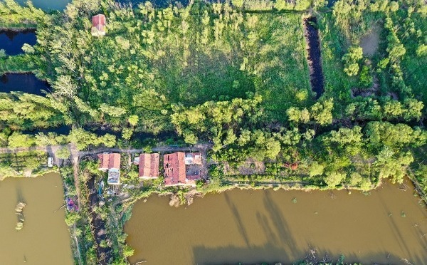 Photo shows an aerial view of fish ponds at Longhu Wetland Park in Jinan, East China's Shandong province, May 17, 2022. [Photo/IC]