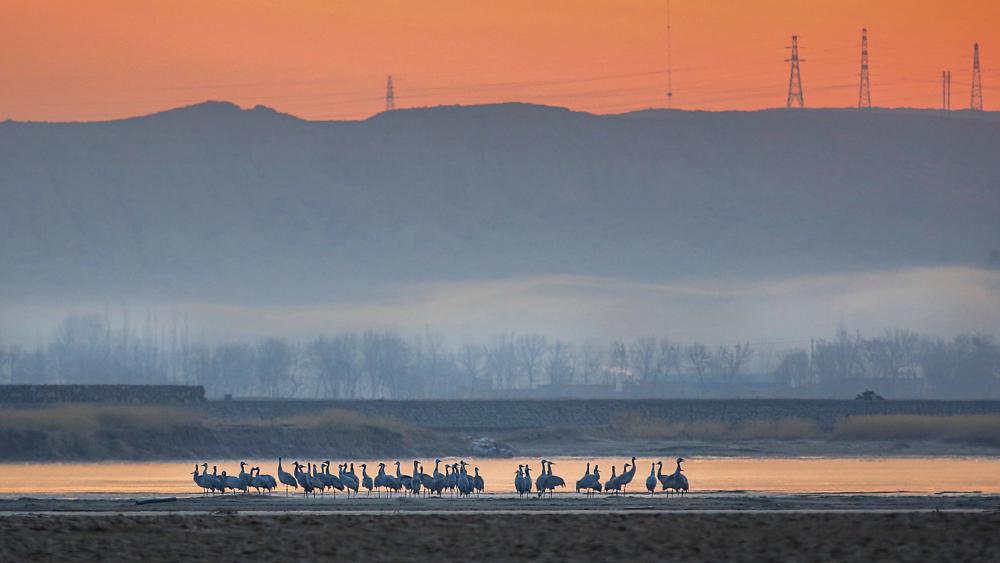 "Common cranes like to winter here and fly to Siberia in summer. In winter, they fly to northern China. The number of common cranes wintering in the Yellow River's Shizuishan section is about 5,000 per year," said Lu Youtan, the photographer.