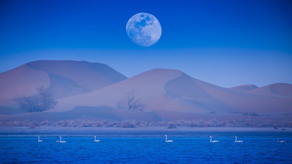 Sand, a full moon and swans — the exotic flavor of the Sand Lake wetlands.