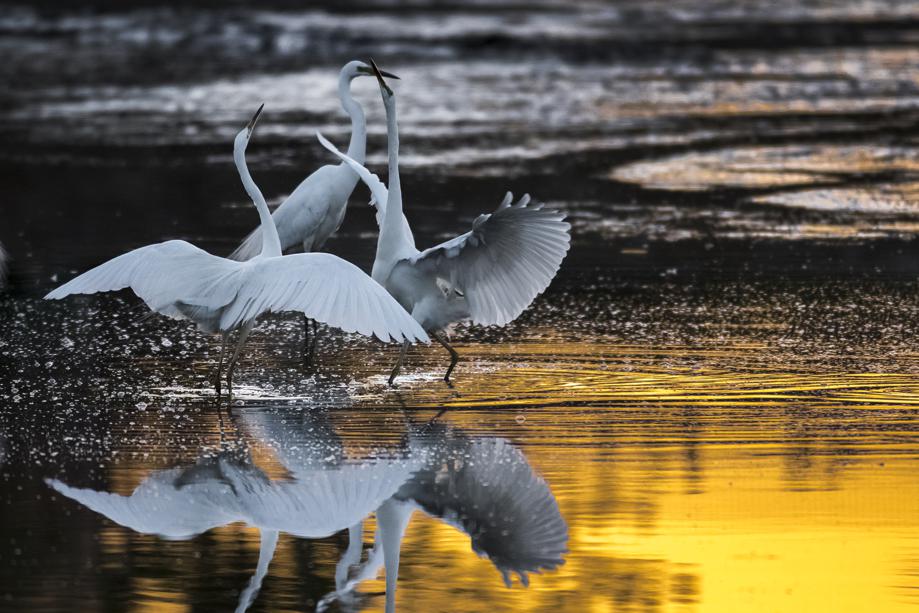 On the banks of the Yellow River, egrets dance. Egrets are extremely sensitive to the environment. They are sometimes called natures ecological inspectors. In recent years, egrets have appeared in the Yellow River's Shizuishan section — a remarkable ecological transformation achieved by this old industrial city.
