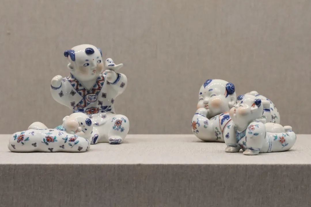 Blue-and-white porcelain sculptures of children with under-glazed paint [Photo/Official WeChat account of the China National Arts and Crafts Museum]