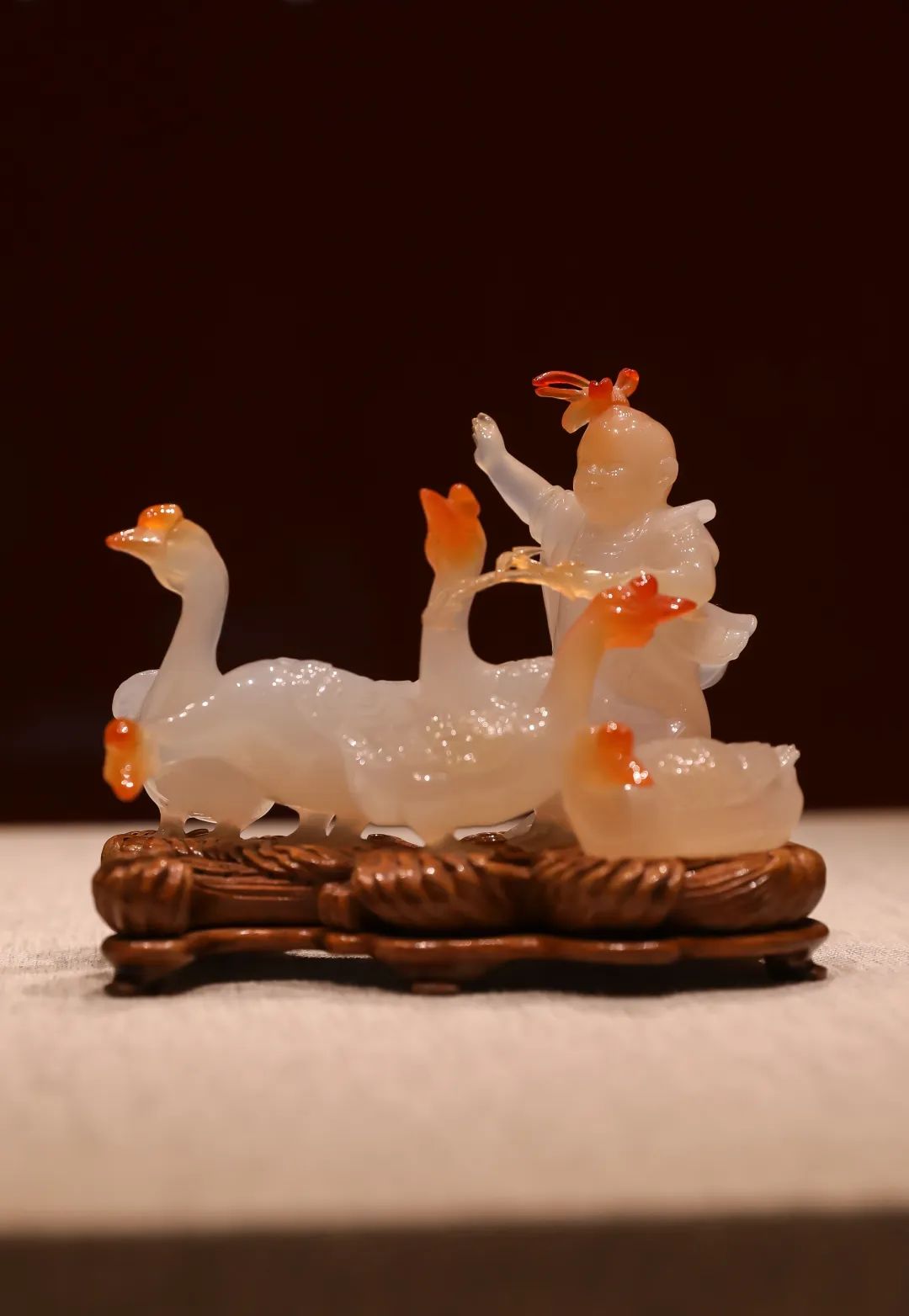 A jade carving of a child looking after geese [Photo/Official WeChat account of the China National Arts and Crafts Museum]