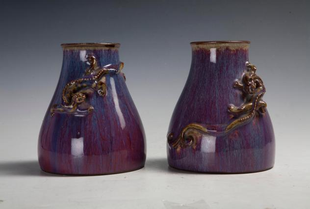 Two fish-basket-shaped vases with dragon patterns, Yongzheng reign (1723-1735) of the Qing Dynasty [Photo/Official WeChat account of the Tianjin Museum]