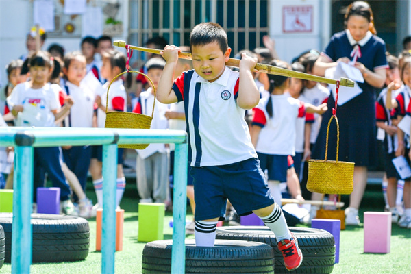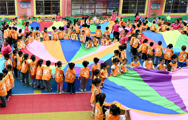 Children attend fun activities at a kindergarten in Shaoyang city, Hunan province on May 31, 2022. [Photo by Teng Zhizhong/for chinadaily.com.cn]