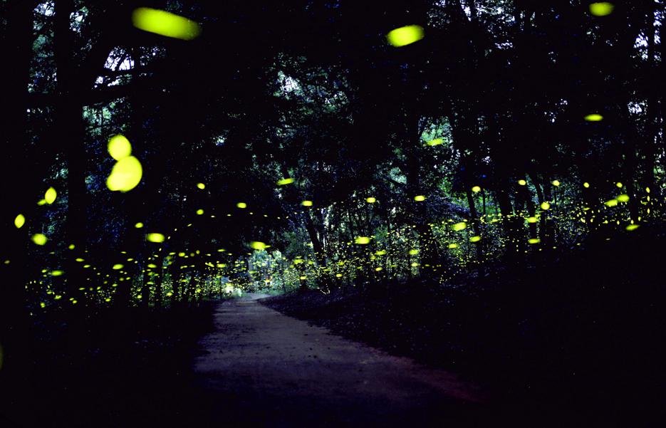 Fireflies light up at the night at South China Agricultural University in Guangzhou, Guangdong province. [Photo by Zheng Erqi/chinadaily.com.cn]