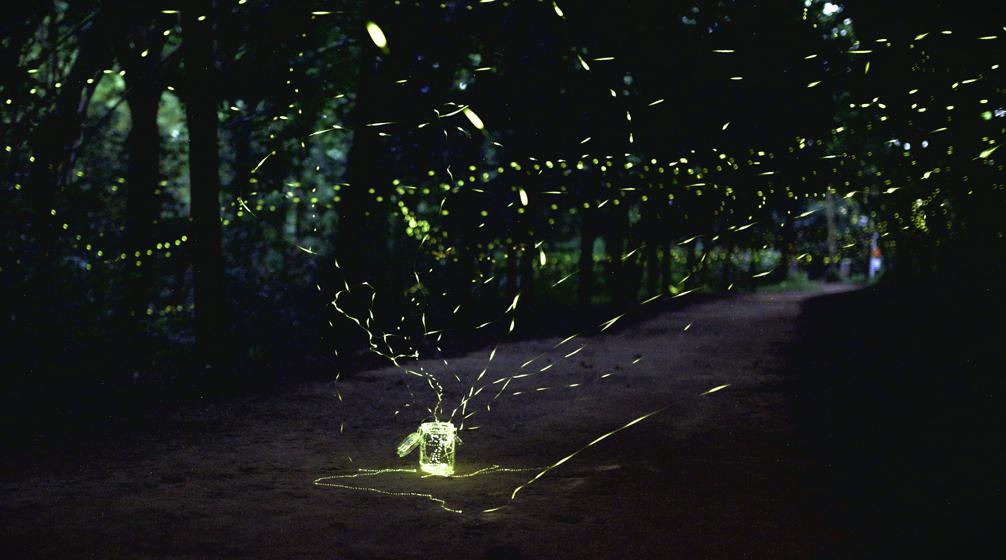 Fireflies light up at the night at South China Agricultural University in Guangzhou, Guangdong province. [Photo by Zheng Erqi/chinadaily.com.cn]
