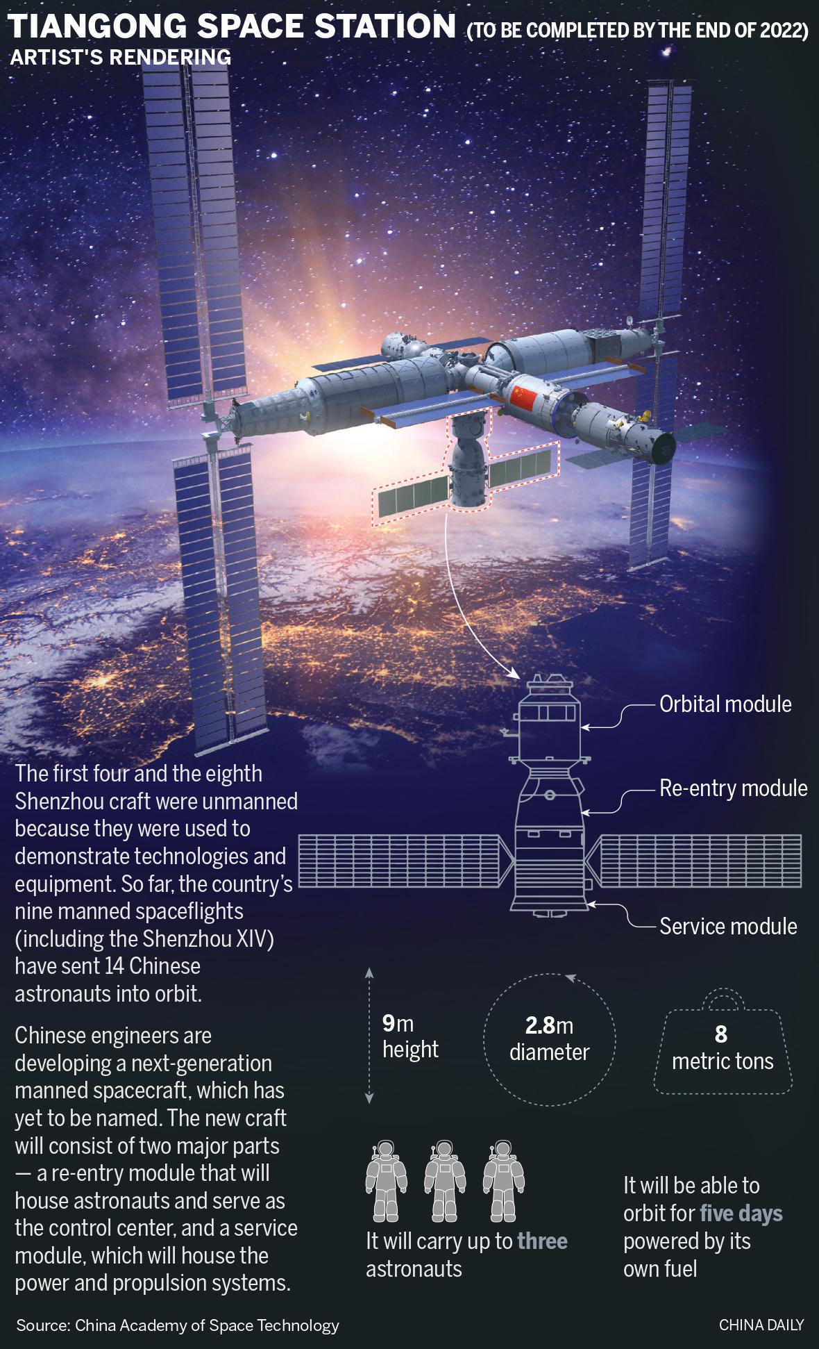 The astronauts will also be tasked with installing and configuring equipment, conducting scientific experiments and technological demonstrations, and maintaining routine operations on Tiangong, Lin said.