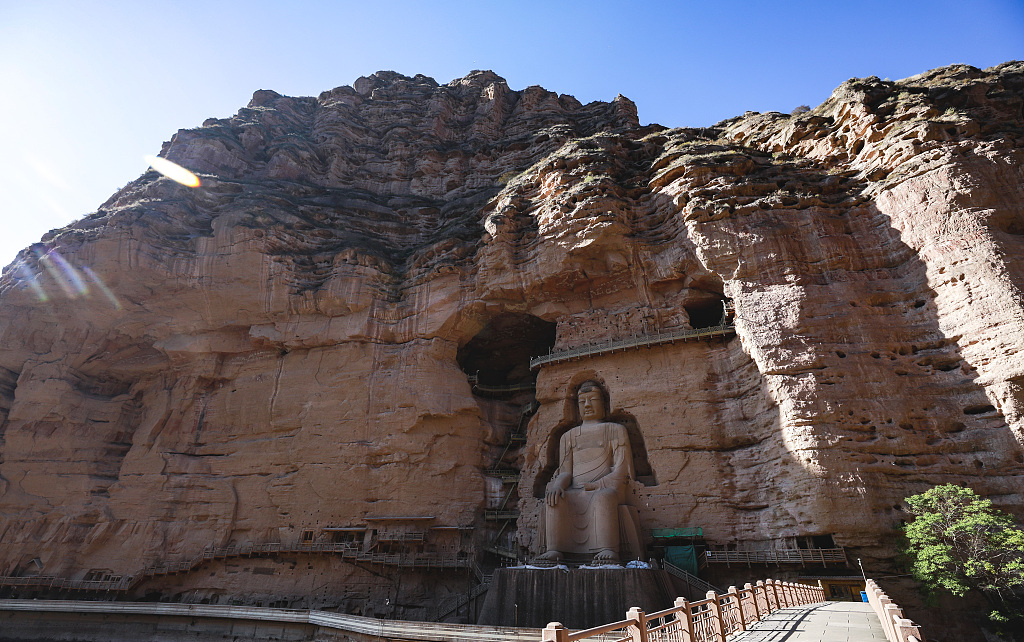 Exterior of the Bingling Temple Grottoes in Yongjing county, Northwest China’s Gansu province [Photo/VCG]