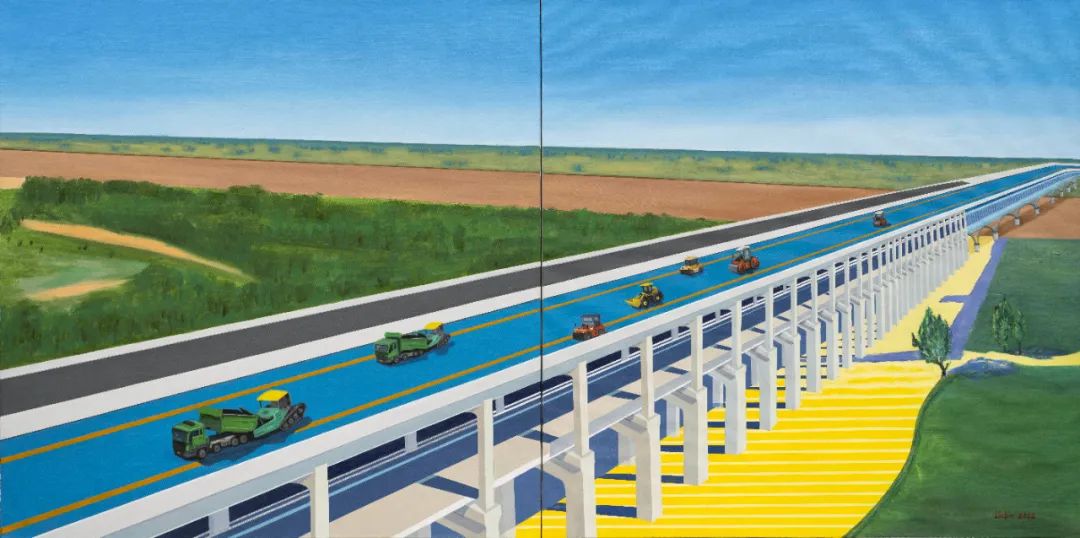 An oil painting by Liu Yin depicts the huge bridge over the Yellow River connecting Zhengzhou and Jinan. [Photo/Official WeChat account of the Zhengzhou Art Museum]