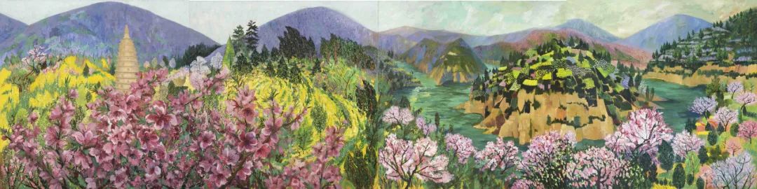 An oil painting by Han Lingzhi compares the beautiful sceneries in ancient and contemporary times. [Photo/Official WeChat account of the Zhengzhou Art Museum]