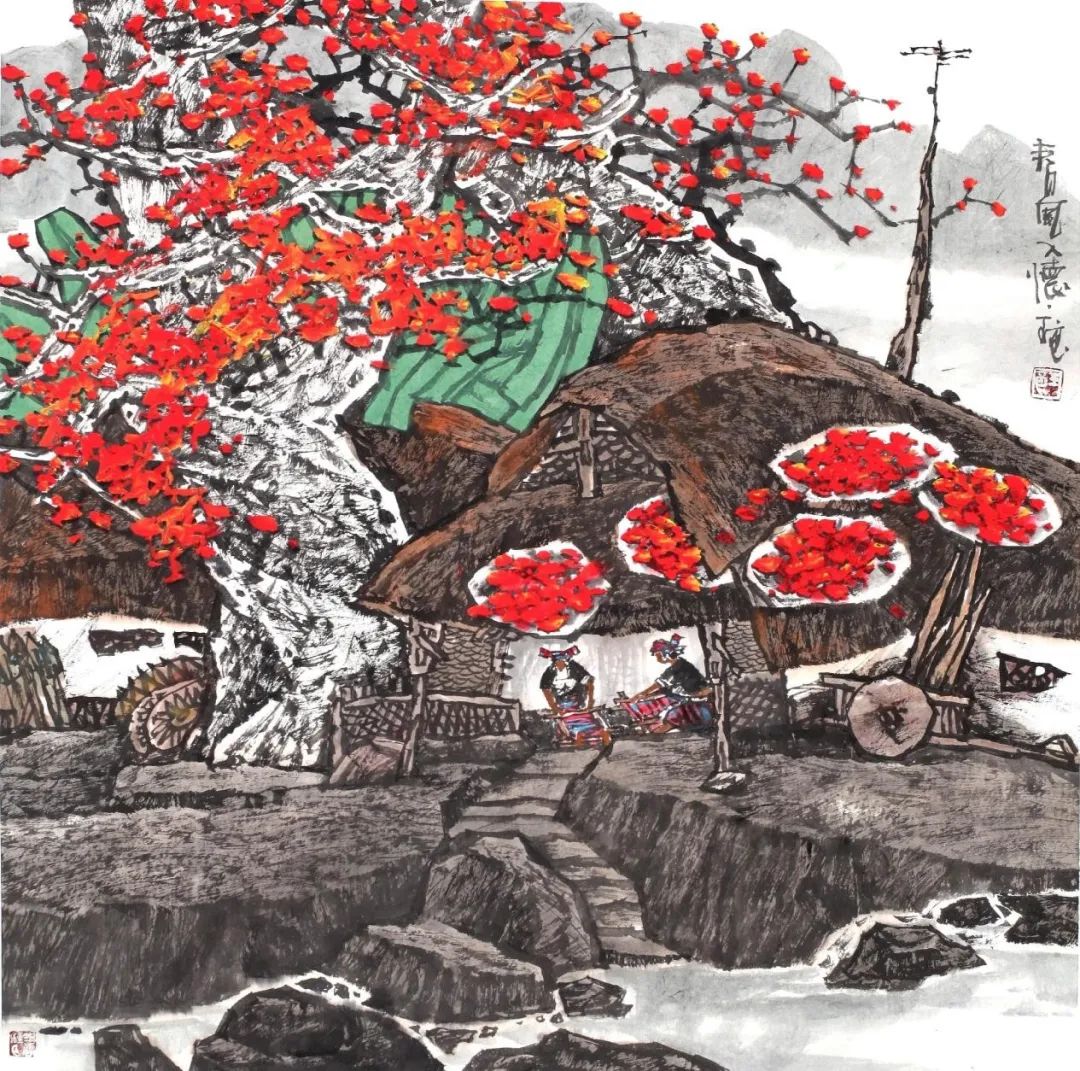 An ink-and-color painting by Wang Liang (王良) portrays women doing traditional embroidery in Hainan. [Photo/Official WeChat account of the Hainan Museum]
