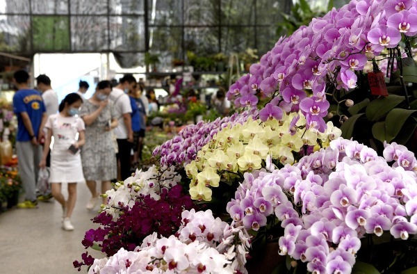 Visitors tour a flower market at Jihua3511 Cultural Innovation Science Park in Xi'an, Northwest China's Shaanxi province, on May 20. [Photo/Xinhua]