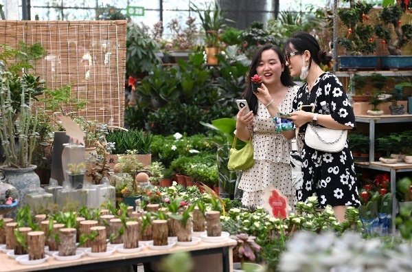 Customers buy flowers at Jihua3511 Cultural Innovation Science Park in Xi'an, Northwest China's Shaanxi province, on May 20. [Photo/Xinhua]