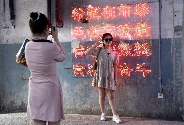 A woman takes a photo at Jihua3511 Cultural Innovation Science Park in Xi'an, Northwest China's Shaanxi province, on May 20. [Photo/Xinhua]