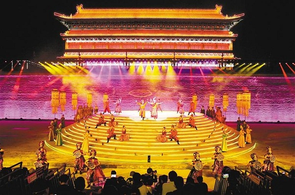 A grand Tang Dynasty-style performance is held at the Xi'an City Wall. [Photo/Xi'an Daily]