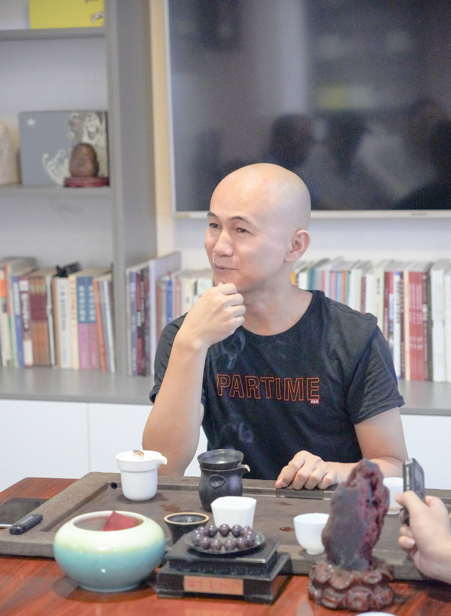 Ye Kaiyuan, a paper-cutting craftsman from Fujian province, works in his studio. [Photo provided to chinadaily.com.cn]