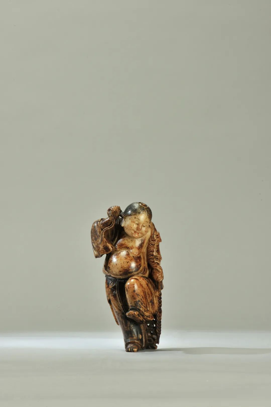 An agalmatolite carving depicts an immortal being playing with a toad, Qing Dynasty. [Photo/Official WeChat account of the Wuxi Museum]