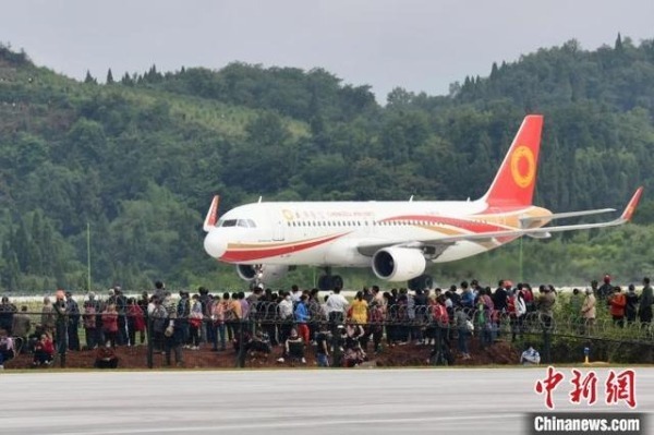 An Airbus 320 aircraft of Chengdu Airlines landed at the Dazhou Jinya Airport Thursday, marking the launch of the new airport in the mountainous city of Dazhou, Southwest China's Sichuan province.