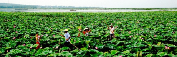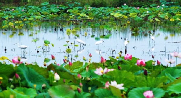 It has a lotus pond that stretches over 1,000 mu (66.7 hectares) and creates a mixture of lotuses, fishing, and water culture.