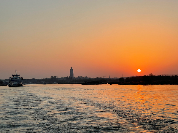 Tourists can take a stroll along the 300-meter corridor across the pond to enjoy the summer breeze scented with lotus flowers and leaves, or stand on the 600-square-meter pavilions to admire a pastoral scene of endless lotuses spreading across glistening water with birds flying overhead in the glow of the sunrise.