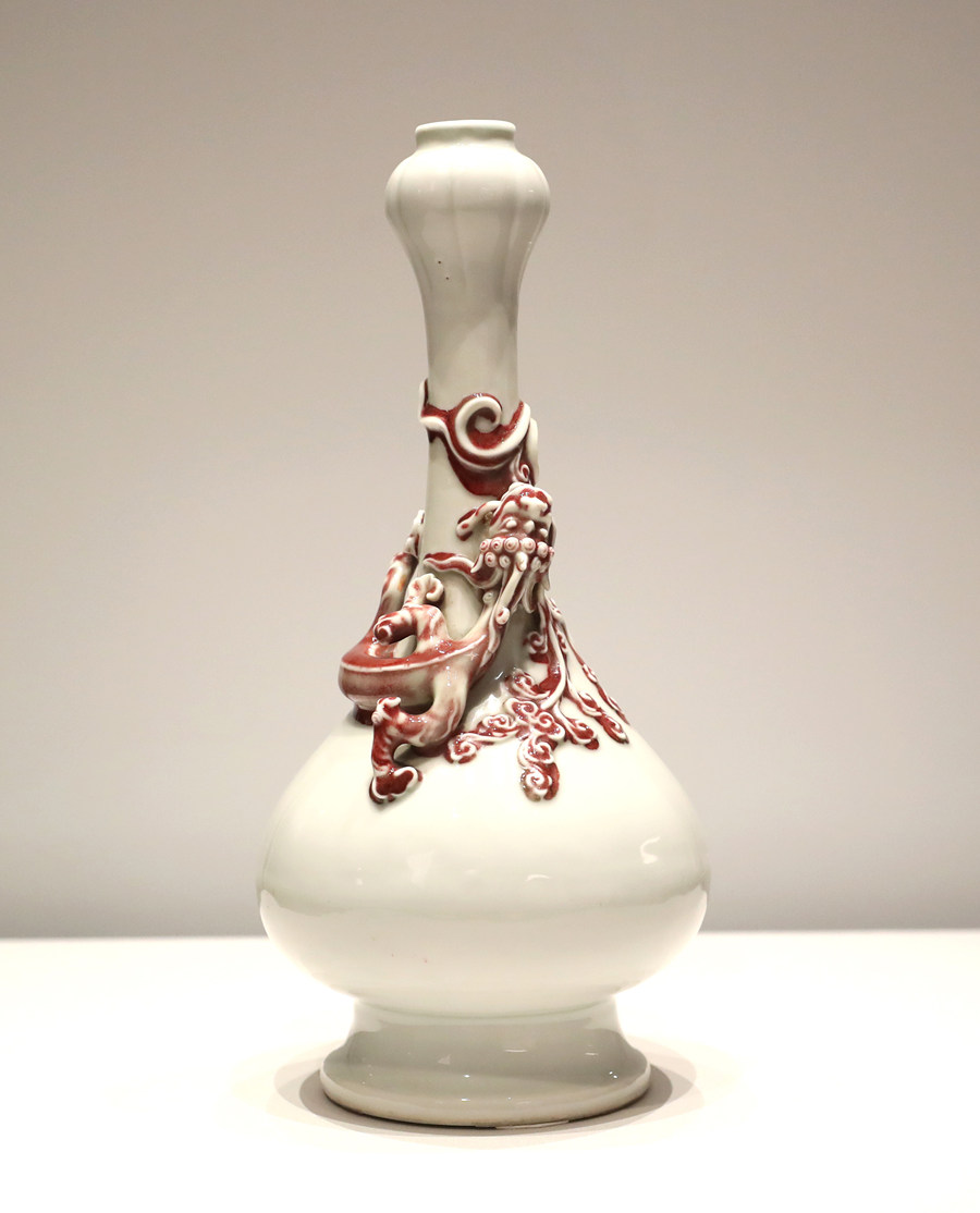 A white glazed "garlic-head" vase from the Ming Dynasty (1368-1644) will be on display at the opening exhibition of the Hong Kong Palace Museum. [Photo by Zou Hong/China Daily]