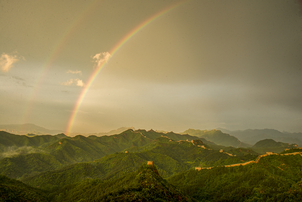 Have you ever seen a double rainbow? After a recent rainfall, a double rainbow appeared above the Jinshanling Great Wall in Chengde, North China’s Hebei province. Rare and pretty!