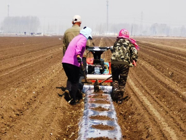 As temperatures rise in the spring, farmers are busily engaged with their spring plowing on a turnip plantation in Nongan county, Jilin province.