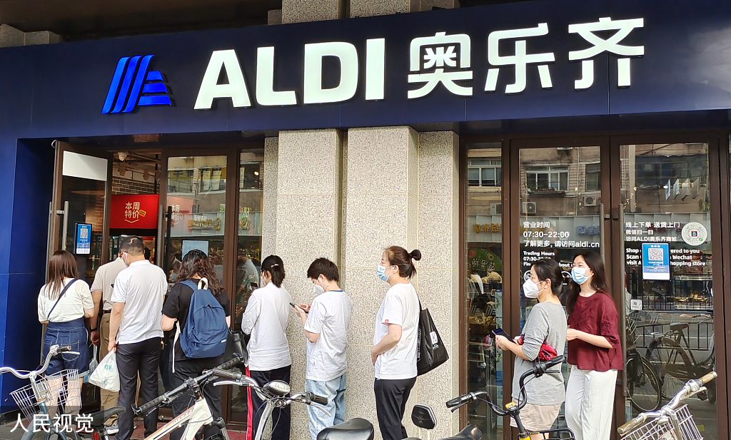 People line up to enter an ALDI supermarket in Shanghai on June 9, 2022. [Photo/VCG]