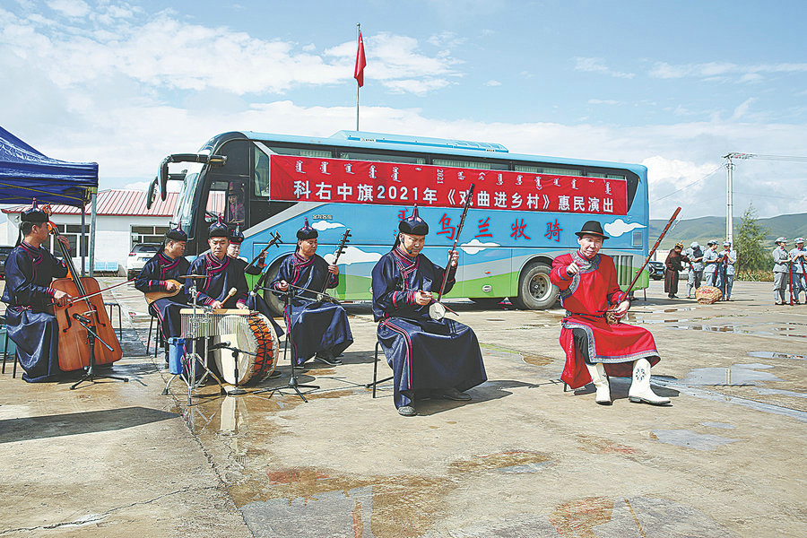 The history of Ulan Muqir dates back to the Sonid Right Banner in Xilin Gol League, where the first Ulan Muqir troupe was formed on June 17, 1957. Now, there are 75 Ulan Muqir troupes in Inner Mongolia, bringing 7,000 performances to audiences in the region each year.