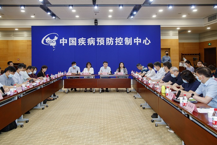 Staff members from the China CDC, units directly affiliated to the China CDC, and provincial-level CDCs attend the symposium both online and offline on Jun 8, 2022. [Photo/chinacdc.cn]