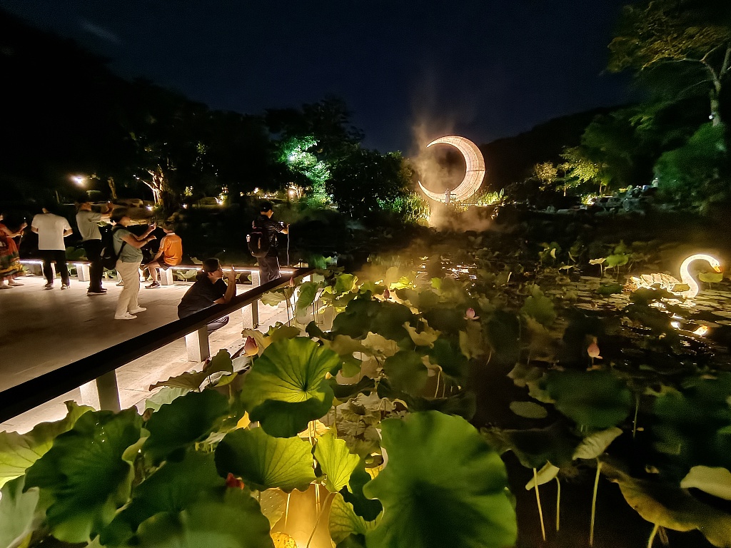 Tourists snap photos of lotus flowers in the Qingxiushan scenic area in Nanning, South China’s Guangxi Zhuang autonomous region in the evening. [Photo/VCG]