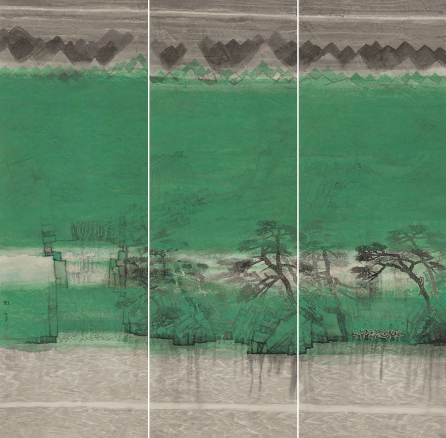 One of Zhou Shifeng's landscape paintings on show. [Photo provided to China Daily]