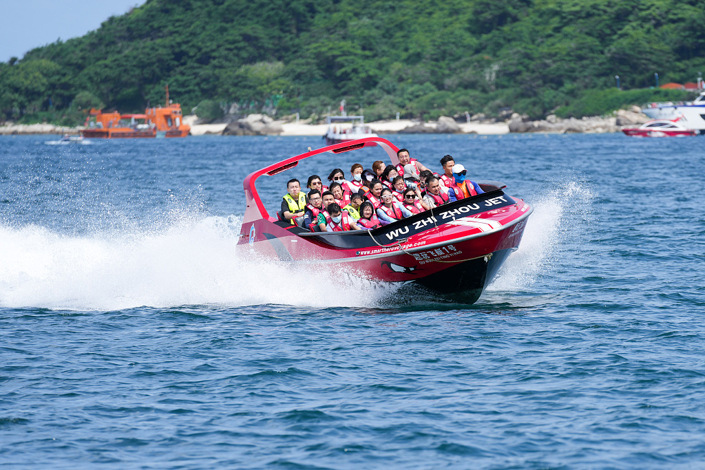 Tourists take speedboat rides in the Wuzhizhou Island Tourism Resort in Sanya, South China’s Hainan province. [Photo/VCG]