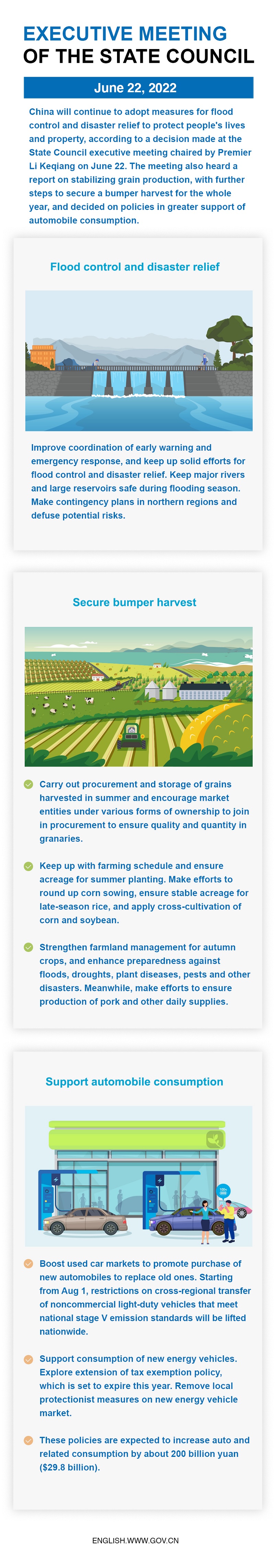 What State Council says about securing bumper harvest and supporting automobile consumption