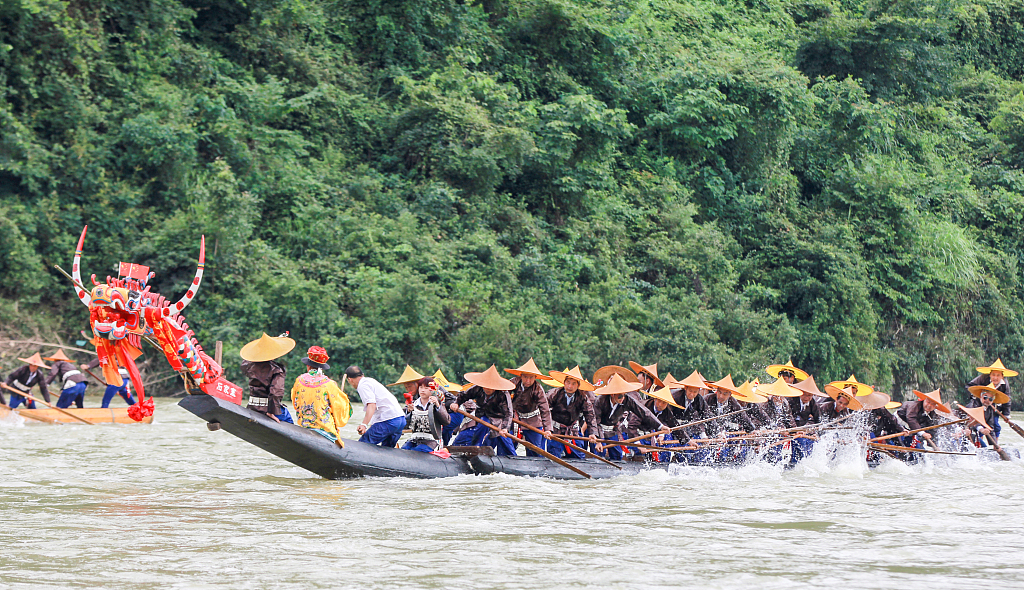 Miao people celebrate dragon canoe festival in Guizhou