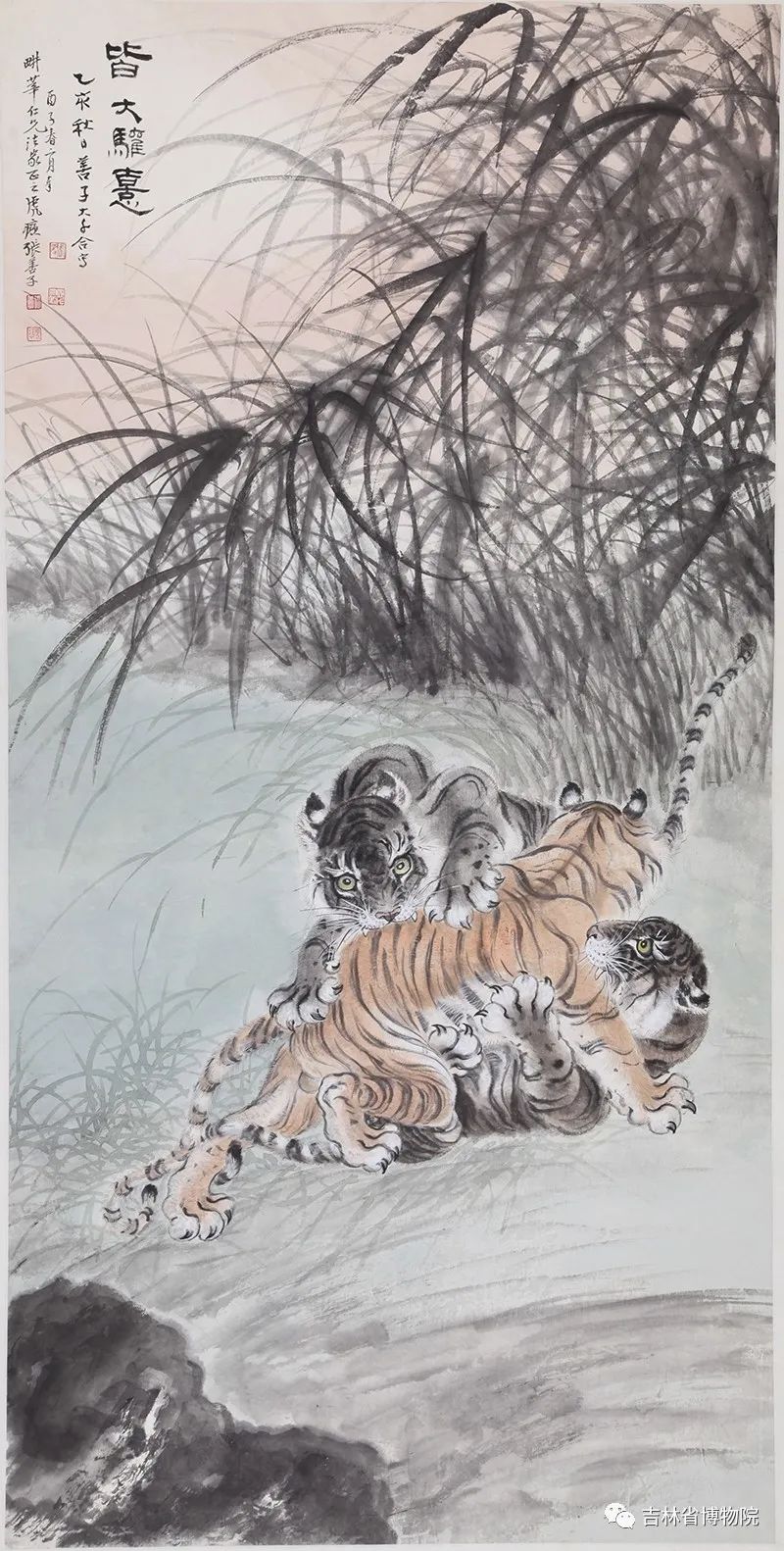 A painting by Zhang Shanzi (张善孖) portrays three tigers. [Photo/Official WeChat account of the Jilin Museum]