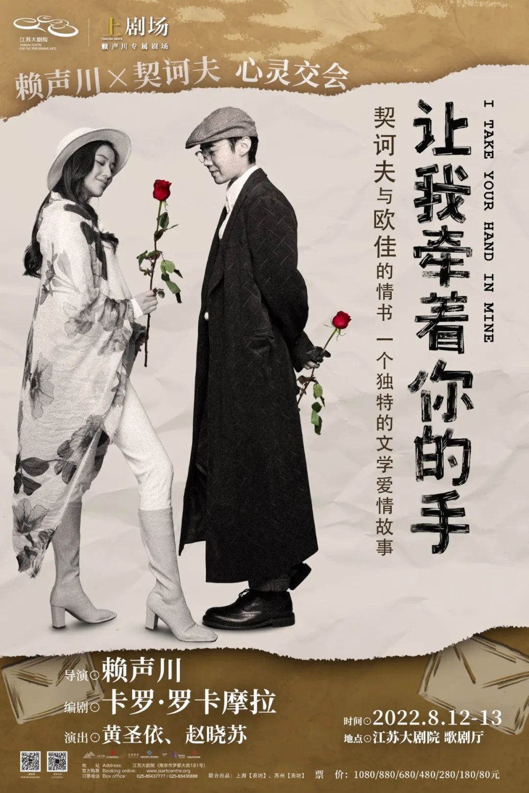 Directed by Stan Lai , the drama I Take Your Hand in Mine will greet audiences at the Jiangsu Grand Theater on Aug 12 and 13. The play is inspired by the letters between Russian literary giant Chekhov and his wife, as he expresses his passion for love and the arts. Don’t miss it!