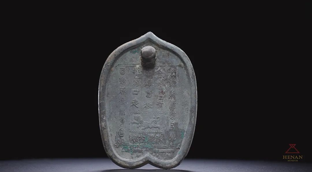 Peach-shaped bronze mirror with inscriptions, Yuan Dynasty (1271-1368) [Photo/Official WeChat account of the Henan Museum]