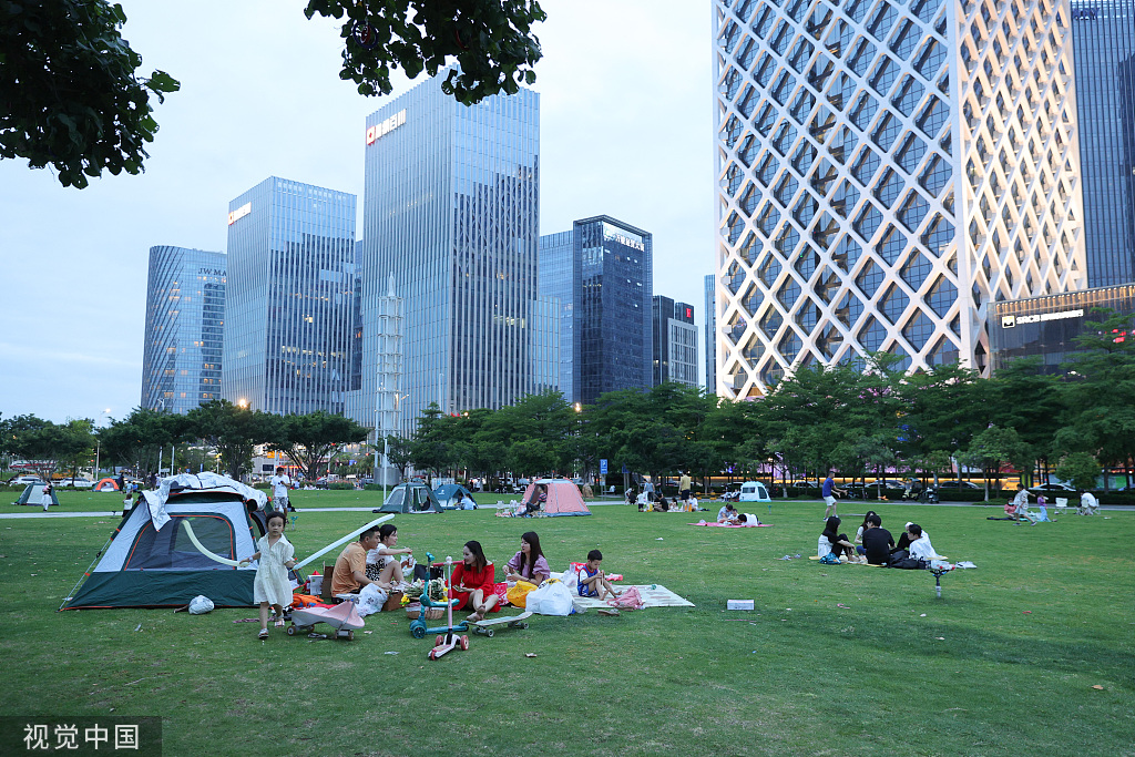 Citizens are camping in a park in Shenzhen, Guangdong province, May 22, 2022. [Photo/VCG]