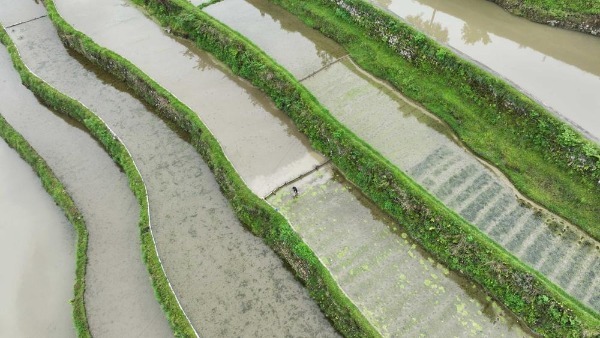 The layers of terraced fields are a masterpiece of farming culture handed down by the ancestors of local Miao residents. Villagers plow fields and transplant rice seedlings.