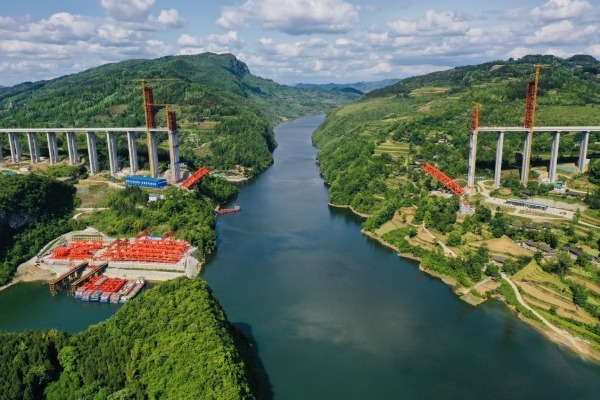 The giant bridge on the route —Wujiang Bridge, which is located in Tongren, Guizhou — is the key project of the expressway. Its total length is 1,834 meters, with 504 meters spanning water.