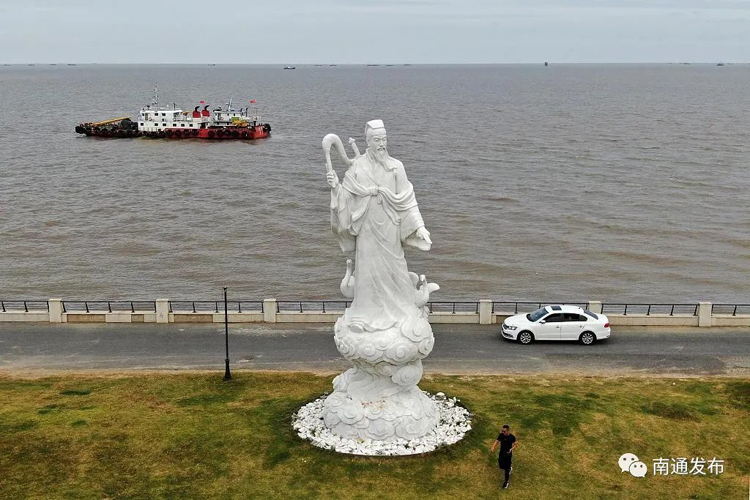 The statue of Lyu Dongbin stands by the Yellow Sea in Qidong. [Photo/WeChat account: wxntfb]