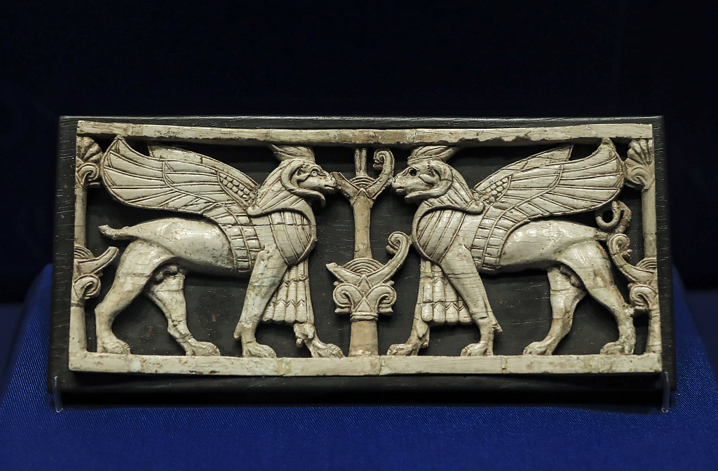 Carved stone with a pair of Sphinx, dating to 900-800 BC [Photo/VCG]