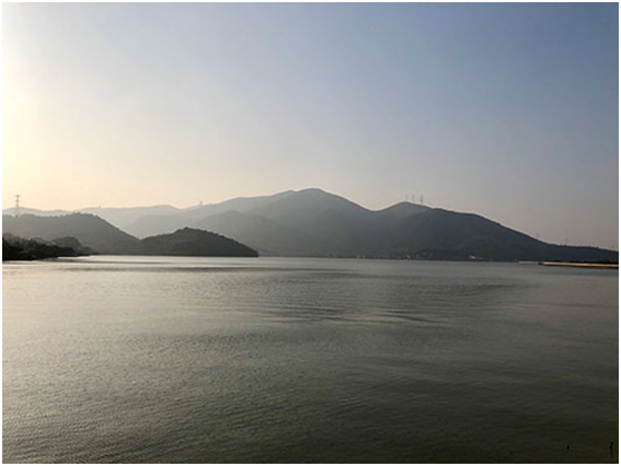 The lake next to Fengpao. As often, the real view is much nicer than a photo can tell. In the distance are high electricity lines.[Photo provided to chinadaily.com.cn]