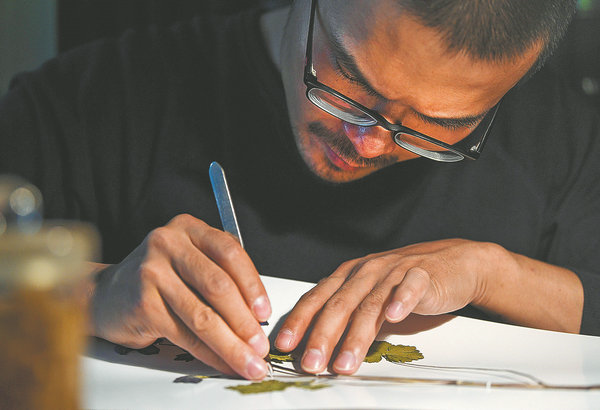 On each day of the field trip, Yang cleans the latest specimens, neatly arranges them between sheets of newspaper and places them inside a plant press. Over the next few weeks, he replaces the paper every morning and evening until the specimens are completely dry. These are then labeled and mounted as exhibits. Sometimes, readying one specimen can take up to two months.