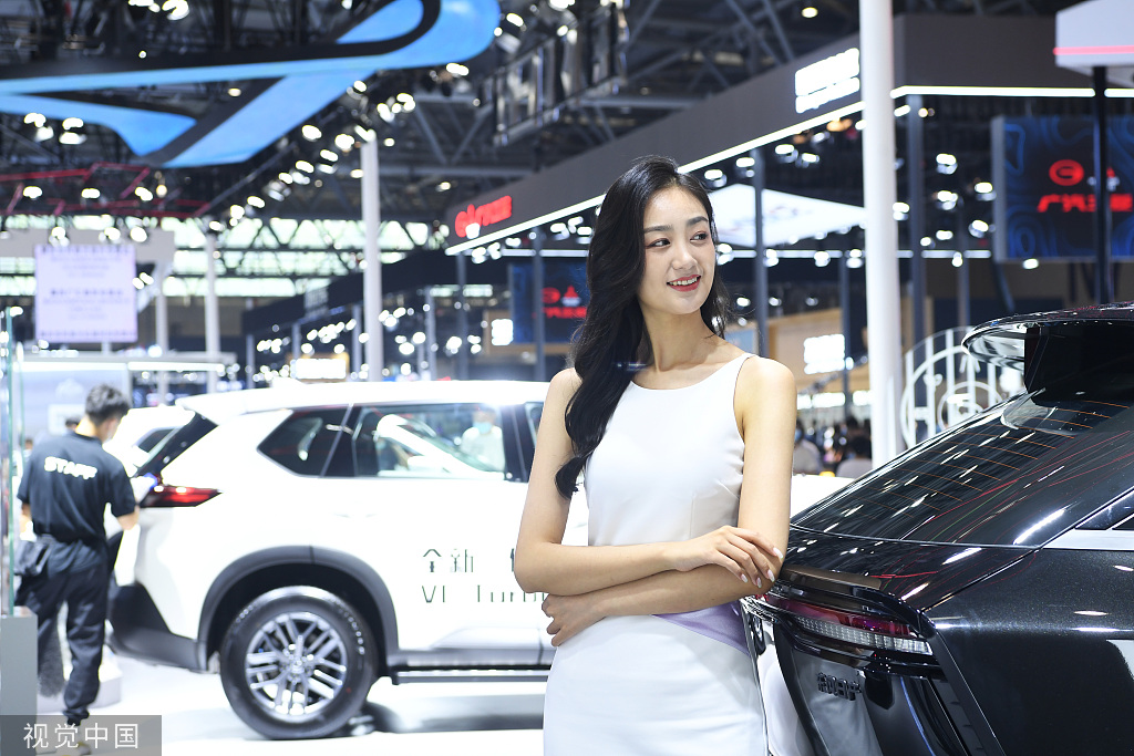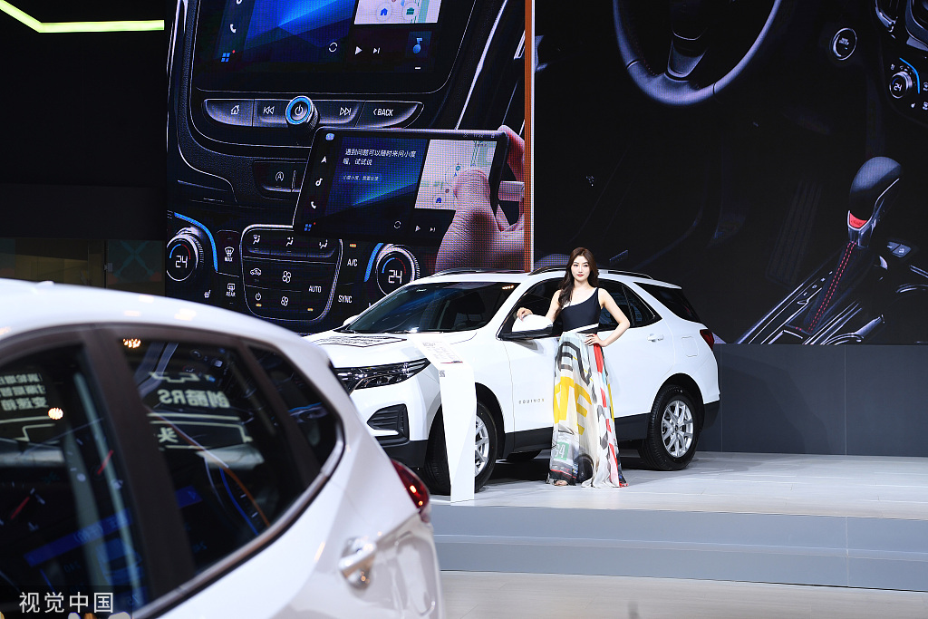 A model poses with a vehicle at the 2022 Chongqing International Auto Exhibition in Southwest China's Chongqing municipality. [Photo/VCG]