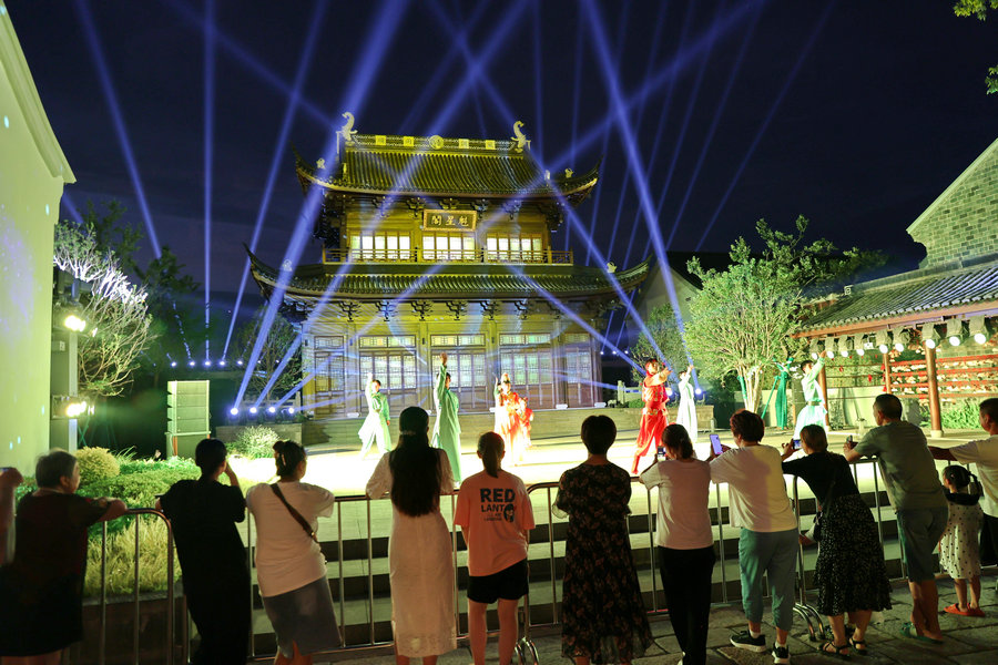 Nighttime on Liuxiban Street of Zhang Jian Culture Town in Changle town of Nantong, East China's Jiangsu province, on June 28, 2022. [Photo/IC]
