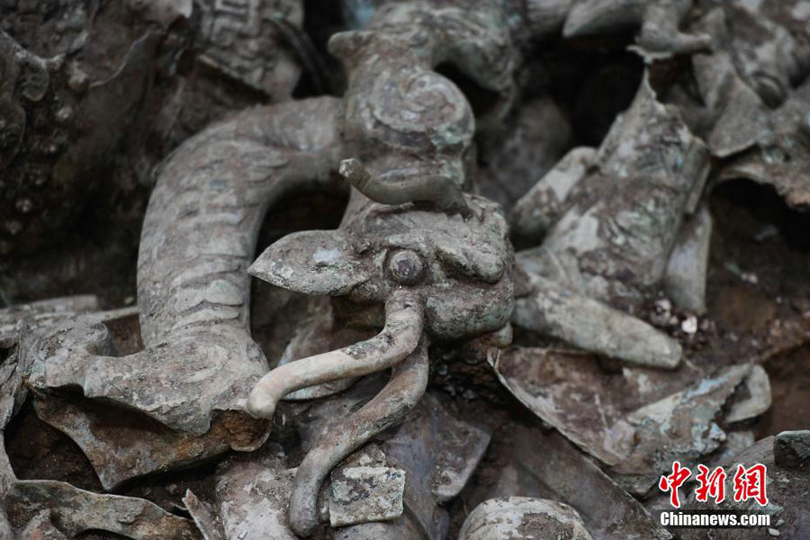 Large quantities of bronze artifacts unearthed from sacrificial pit