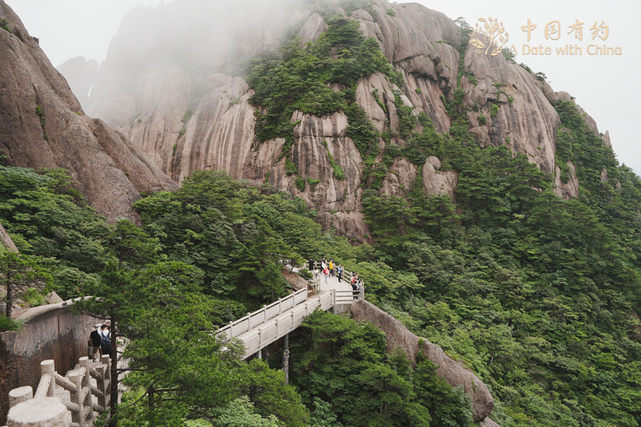 A member of "A date with China" international media tour poses for photos during a visit to Huangshan Mountain in East China's Anhui province, July 1st, 2022. [Photo/chinadaily.com.cn]